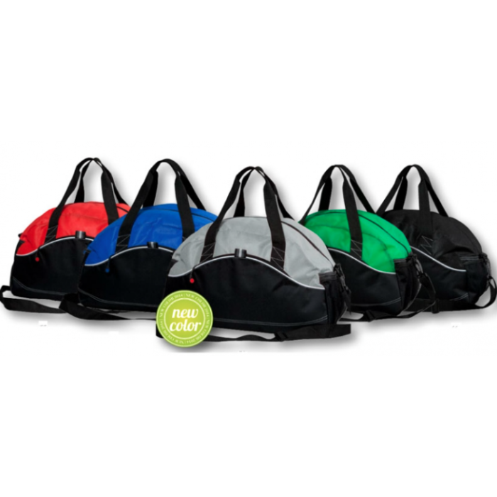 Tofarvet, let sportstaske i nonwoven materiale.
