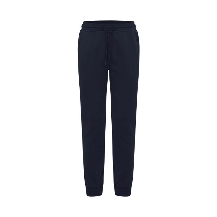Junior joggingbukser lavet af en blanding af bomuld og genbrugspolyester. Har to forlommer og børstet inderside. Talje og ben i 2x2 rib med dobbelt syning. Størrelse 90/100 er lavet uden snøre for forbedret børnesikkerhed. Let aftagelig etiket til rebranding. Det bløde, stabiliserede stof er designet til intensiv vask med anti-pilling egenskaber.