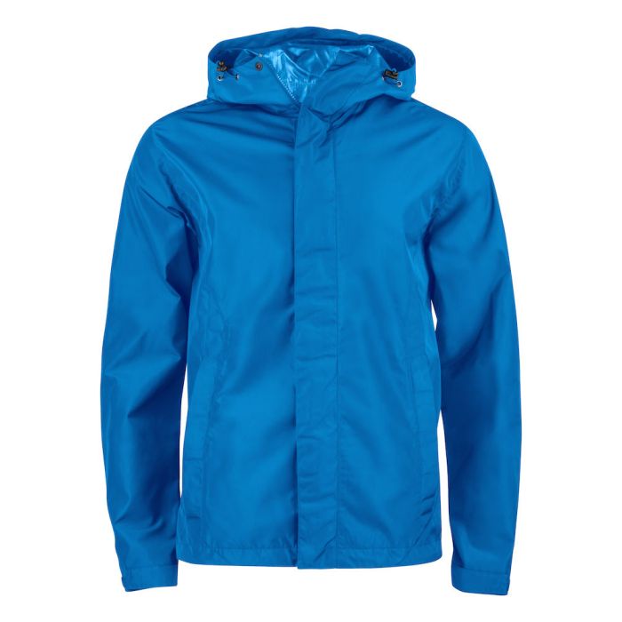 En både sporty, stilfuld og vandtæt unisex jakke. Tapede sømme, 2 frontlommer med lynlåse. Velcro-justering i ærmeende. Justerbar hætte og plads til print.