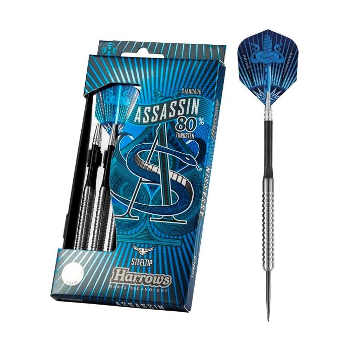 Assassin med 80% er én af Harrows' mest populære pile, fordi der er noget for enhver smag. Serien består af det største udvalg af vægte og designs.