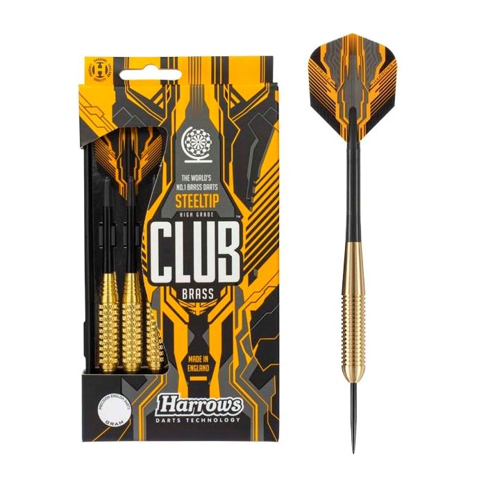 Club Brass fra Harrows er en fin pil med messing bundstykke, sort nylon shaft og Prime flights. Der medfølger en ekstra tynd plastik æske til opbevaring og transportering af pilene.