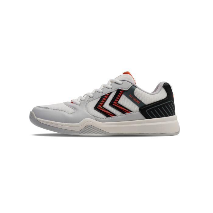 Hummel All Court er en alsidig indendørssko med en kunstlæder- og meshoverdel, som giver dig det bedste inden for både holdbarhed og åndbarhed. Denne sko har forstærkninger i overdel via. en TPU hotmelt og en afsmitningsfri TPR ydersål som kan bruges på indendørs gulve. De giver komfort og stabilitet takket være en responsiv EVA mellemsål, blød polstring på hæl og pløs og indvendige hælkappe.