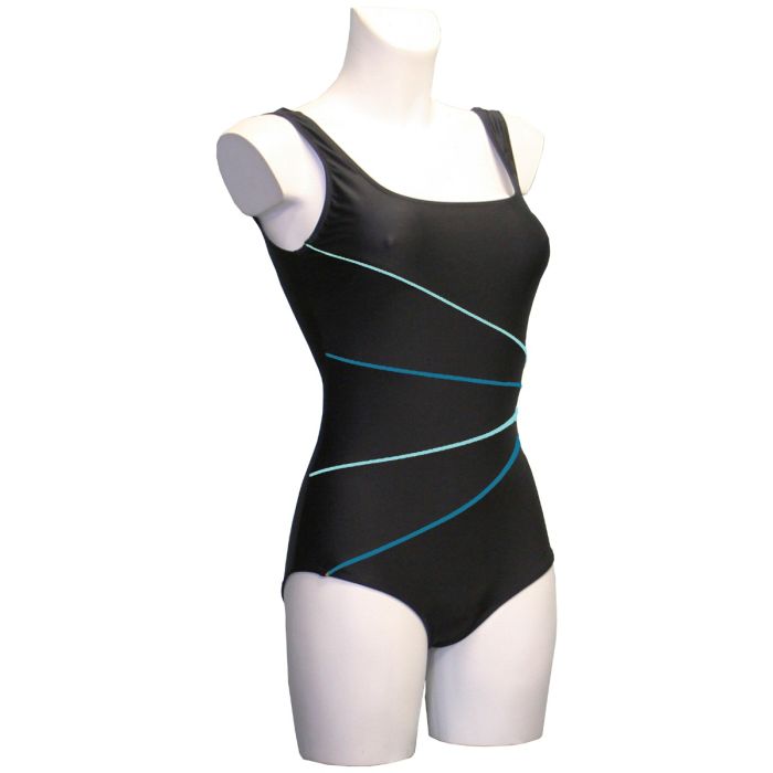 Lykke R badedragt med brystindsnit, topfoer, lavt ben og høj u-ryg Til Kvinder - Sort/Lyseblå
